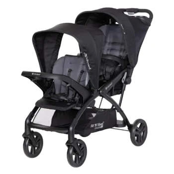 The Baby Trend Sit N' Stand Tandem Double Stroller 2.0 DLX is another option in the same product family, offering similar seating flexibility and compatibility with Baby Trend car seats. It features added storage and sun protection, catering to families needing practical solutions for outings.