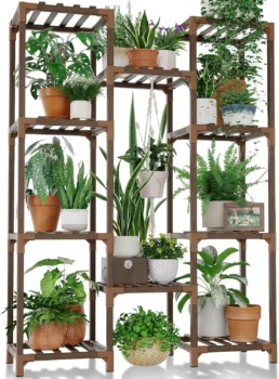 The Bamworld Plant Stand offers a multi-tiered solution for plant enthusiasts seeking to organize and display their collections indoors or outdoors. Designed with ten shelves and a sturdy wood construction, it aims to optimize vertical space while maintaining a natural look.
